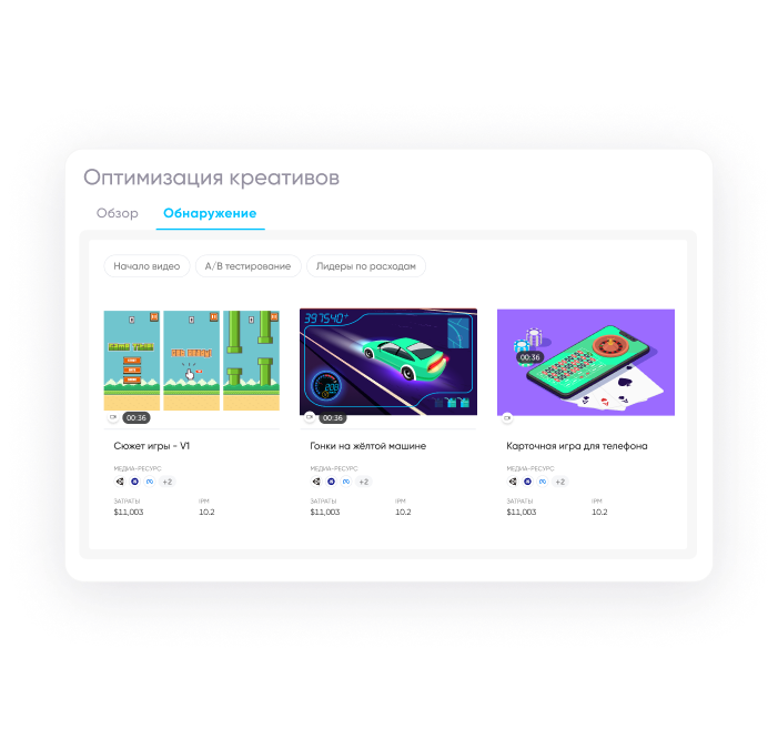 Получите полное и объективное представление об эффективности креативов во всех медиа-источниках с учетом ключевых показателей, включая стоимость, установки и клики, а также метрики в нижней части воронки, такие как удержание и LTV.