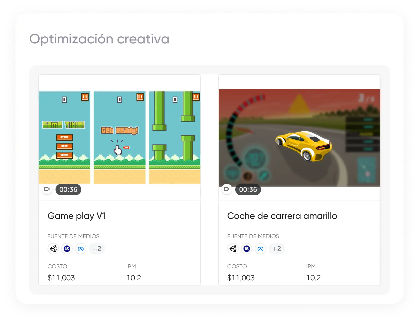 Optimización creativaMejora el rendimiento publicitario con un análisis creativo impulsado por IA que identifican los elementos creativos ganadores y proporcionan recomendaciones procesables para tus campañas de marketing.Descubre insights creativos